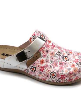 43,00 €Eine echte Schönheit mit verspielter Blümchenapplikation. Neben dem anatomisch geformten, gepolsterten und mit Leder überzogenen Fußbett sticht noch der elegante Klettverschluss am Fersenriemen hervor. Komfort Made in Europe kann sooo gut aussehen… -